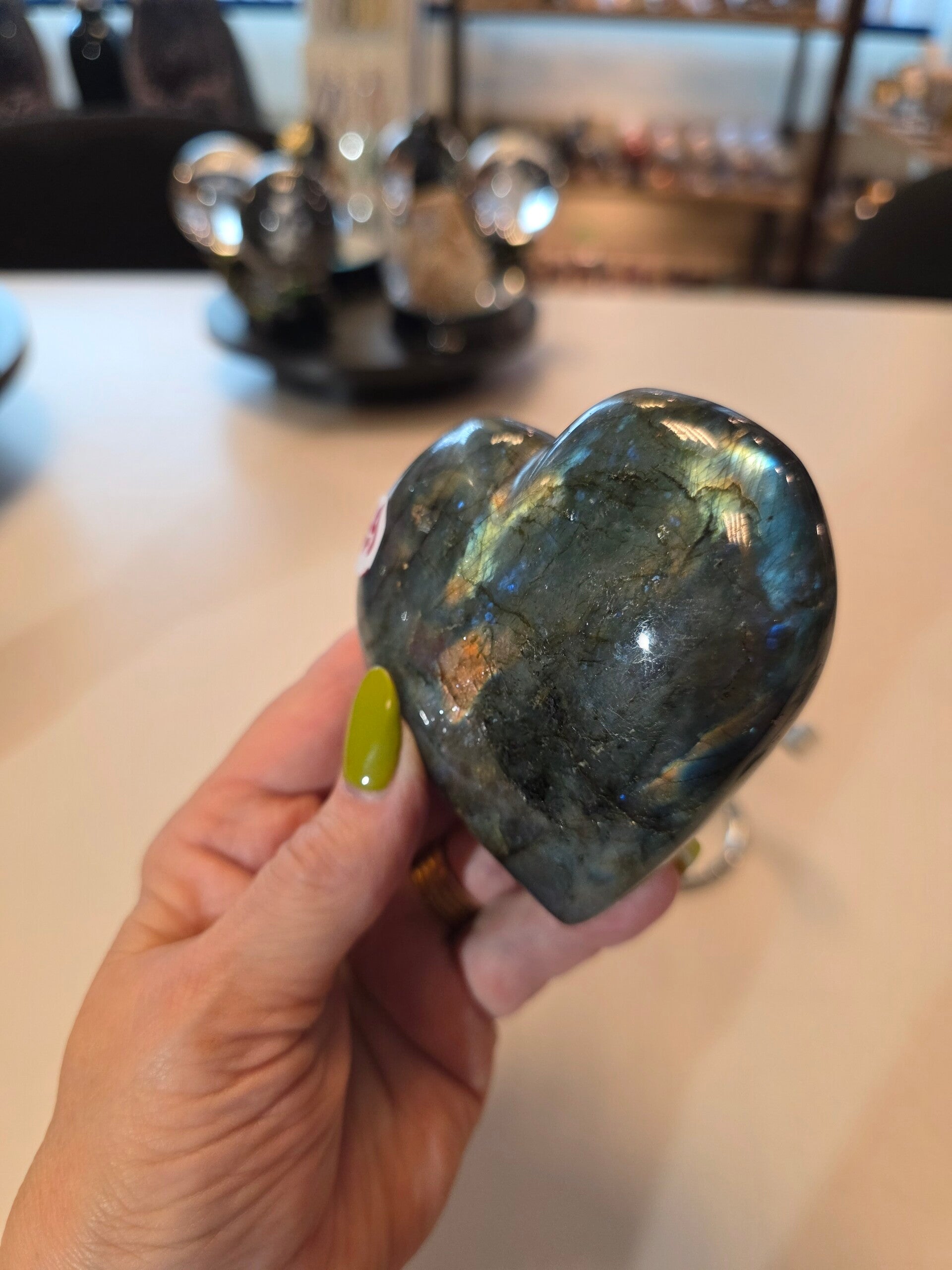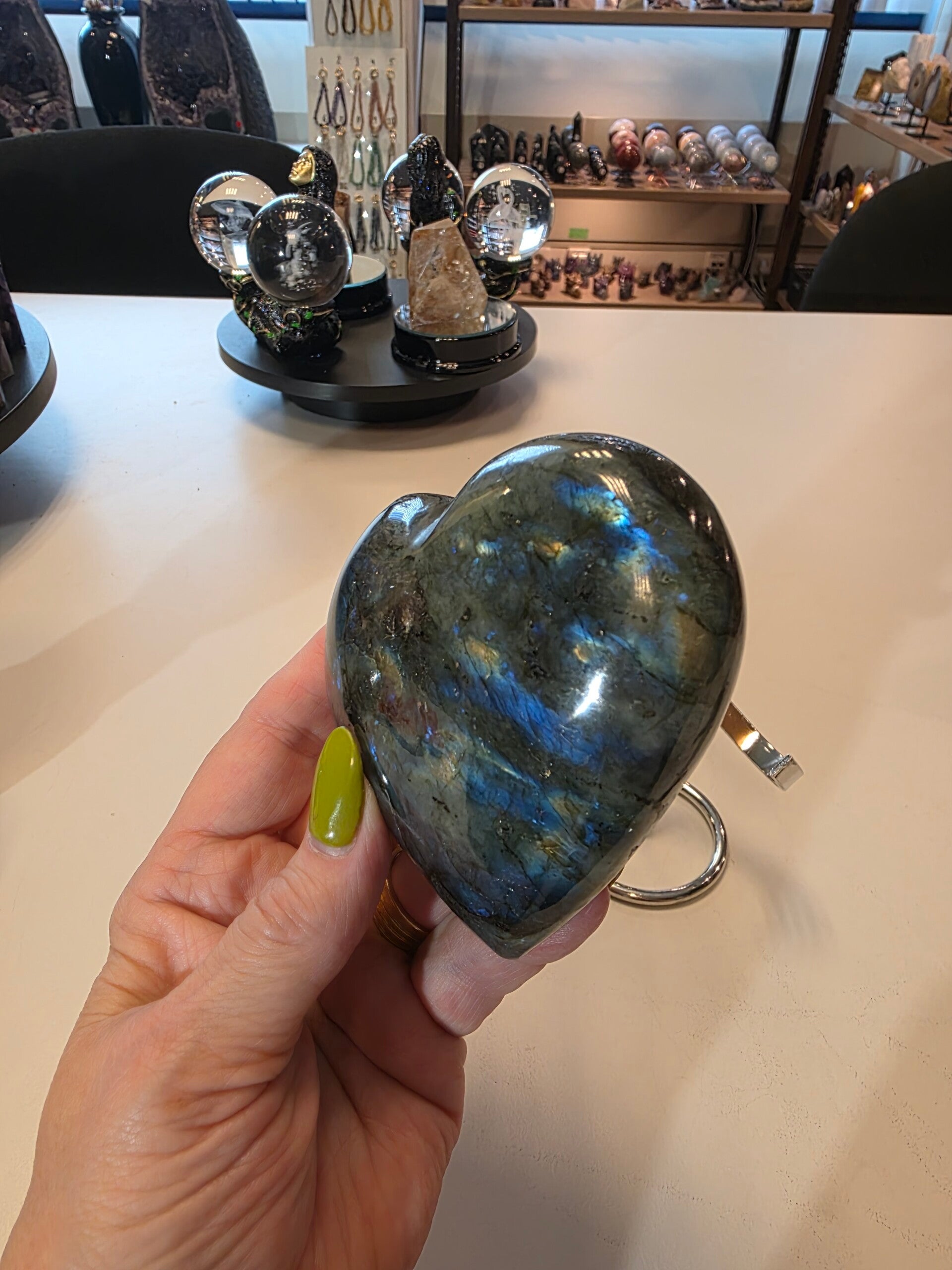 Mooi Labradoriet Hart met blauwe en gouden flash aan beide kanten
