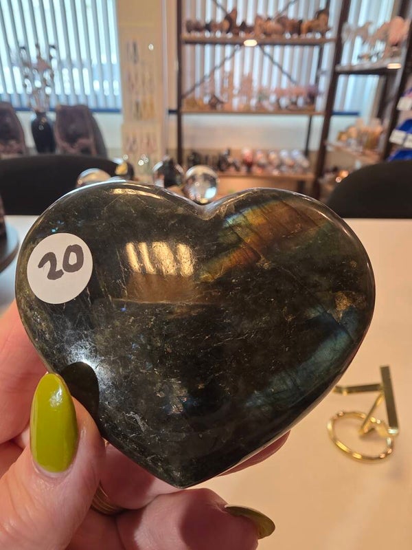 Labradoriet Hart 8cm breed 7 cm hoog nr.4 beschermende en spirituele werking