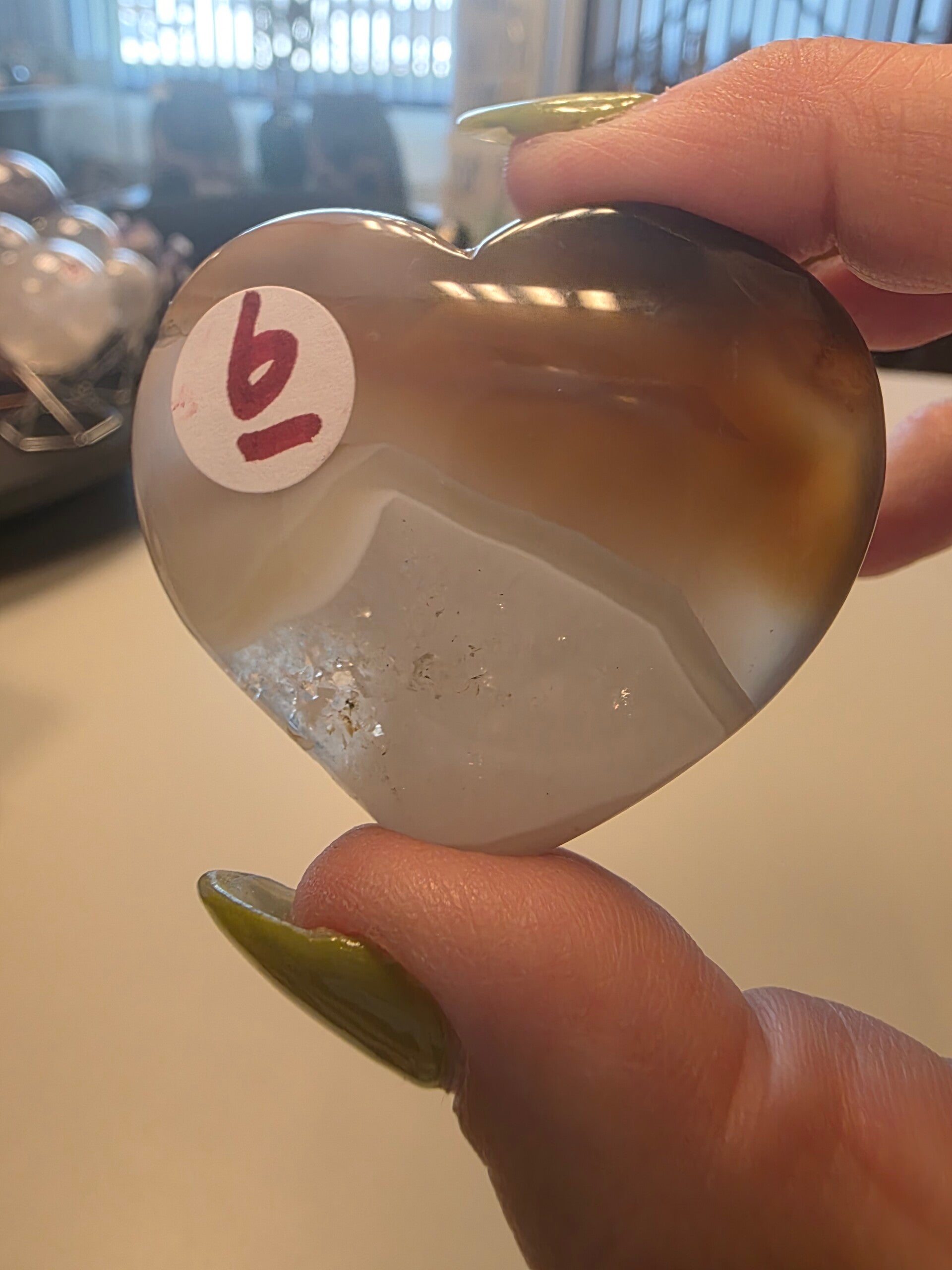 Prachtig Agaat Hart 5.5x5cm nr. 16 aardende, beschermende en stabiliserende steen met een kalmerende werking