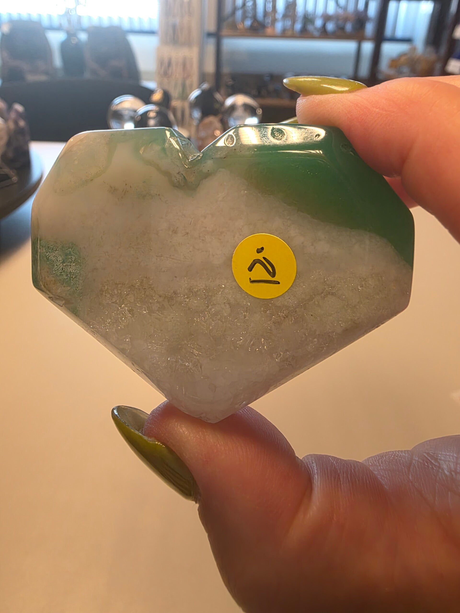 Groene Bloemagaat Agaat Hart 7x5.5cm nr. 17 Bloemagaat ondersteunt je bij het loslaten van negatieve emoties en het omarmen van positiviteit en zelfacceptatie.