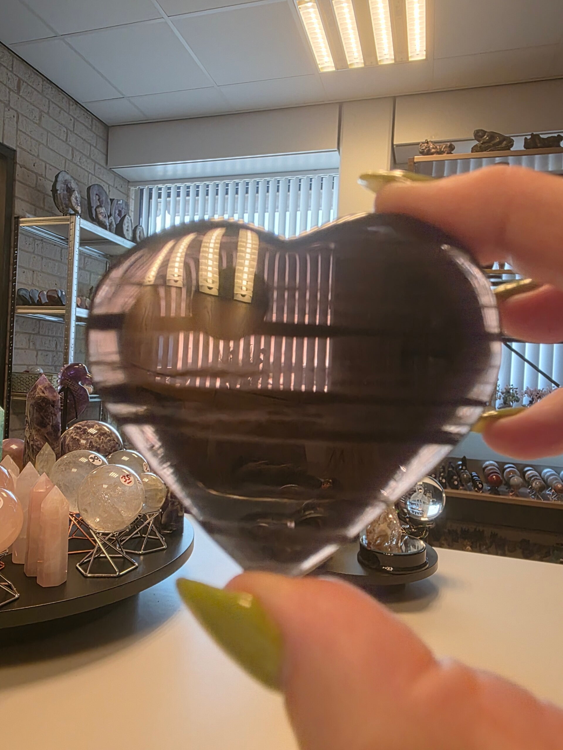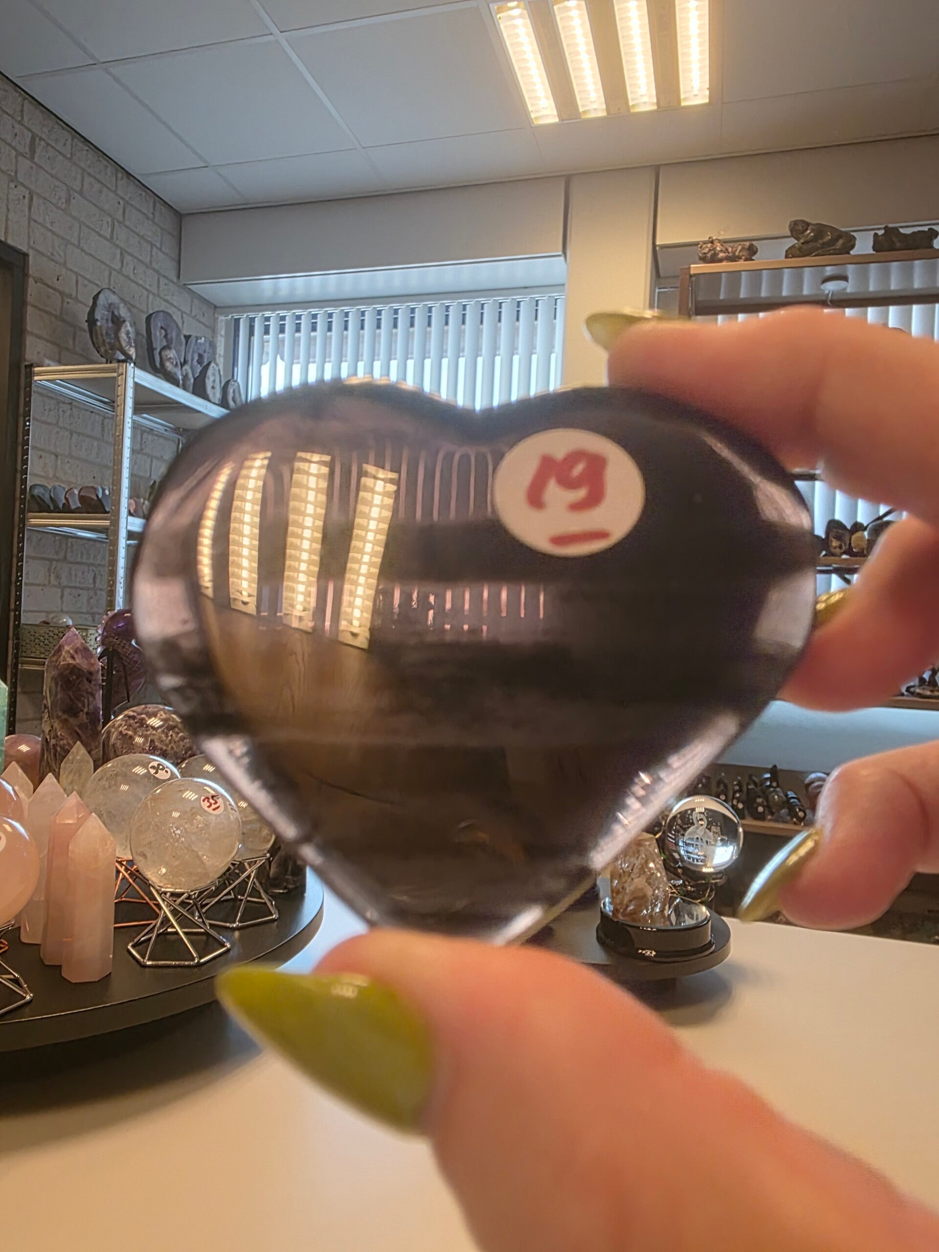 Prachtig ice Obsidiaan Hart 7x6.5 cm nr. 19 aardende en beschermende steen, die helpt bij het opruimen van negatieve energie en het stimuleren van persoonlijke ontwikkeling door inzicht. Op fysiek niveau wordt