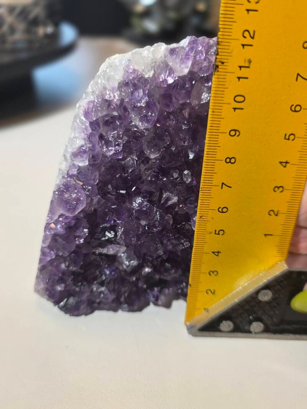AMETHIST OP STANDVLAK 12.5x11 cm nr. 21 Vergroot spiritueel bewustzijn en intuïtie, Vergemakkelijkt meditatie en spirituele groei, Beschermt tegen negatieve invloeden, Versterkt het gevoel van rechtvaardigheid en oprechtheid.