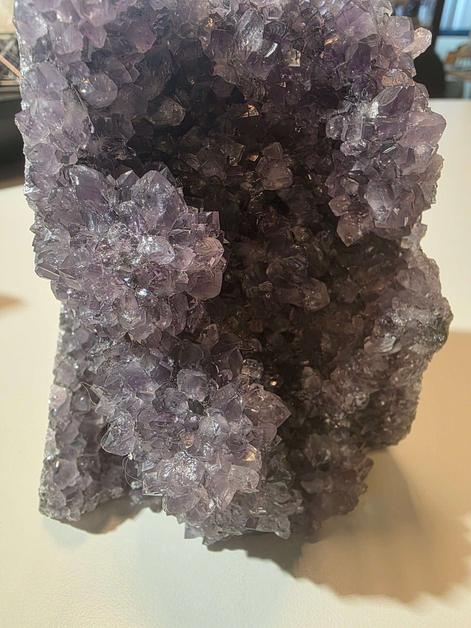 AMETHIST OP STANDVLAK 12.5x9 cm nr.23 Vergroot spiritueel bewustzijn en intuïtie, Vergemakkelijkt meditatie en spirituele groei, Beschermt tegen negatieve invloeden, Versterkt het gevoel van rechtvaardigheid en oprechtheid.