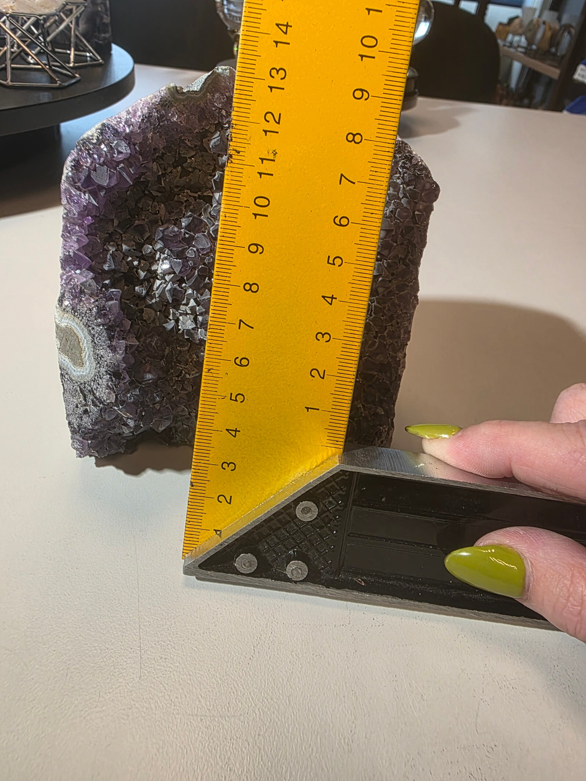AMETHIST OP STANDVLAK 13x10cm nr. 27 Vergroot spiritueel bewustzijn en intuïtie, Vergemakkelijkt meditatie en spirituele groei, Beschermt tegen negatieve invloeden, Versterkt het gevoel van rechtvaardigheid en oprechtheid.