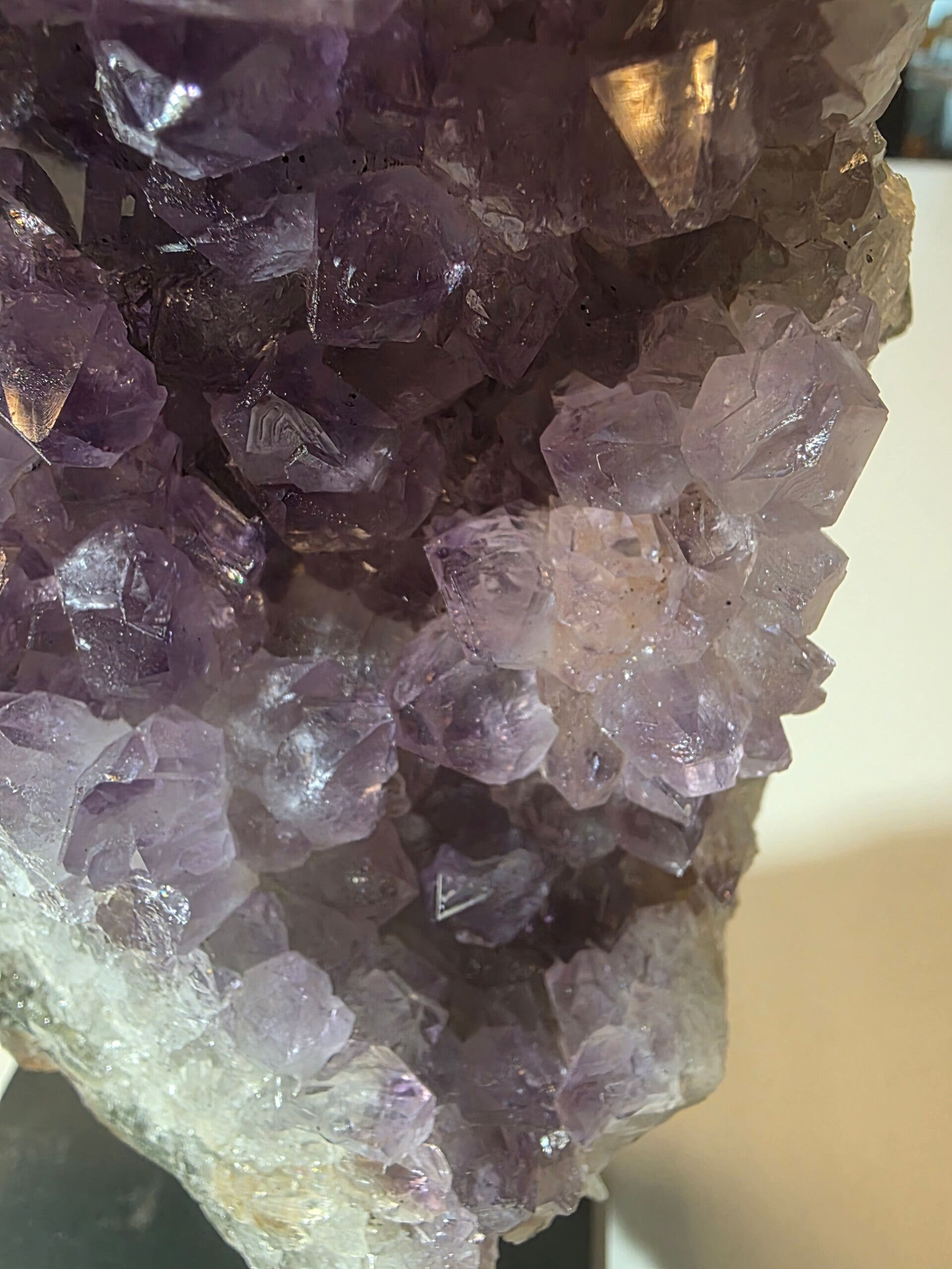 AMETHIST op standaard 19x11 cm nr. 29 Vergroot spiritueel bewustzijn en intuïtie, Vergemakkelijkt meditatie en spirituele groei, Beschermt tegen negatieve invloeden, Versterkt het gevoel van rechtvaardigheid en oprechtheid.