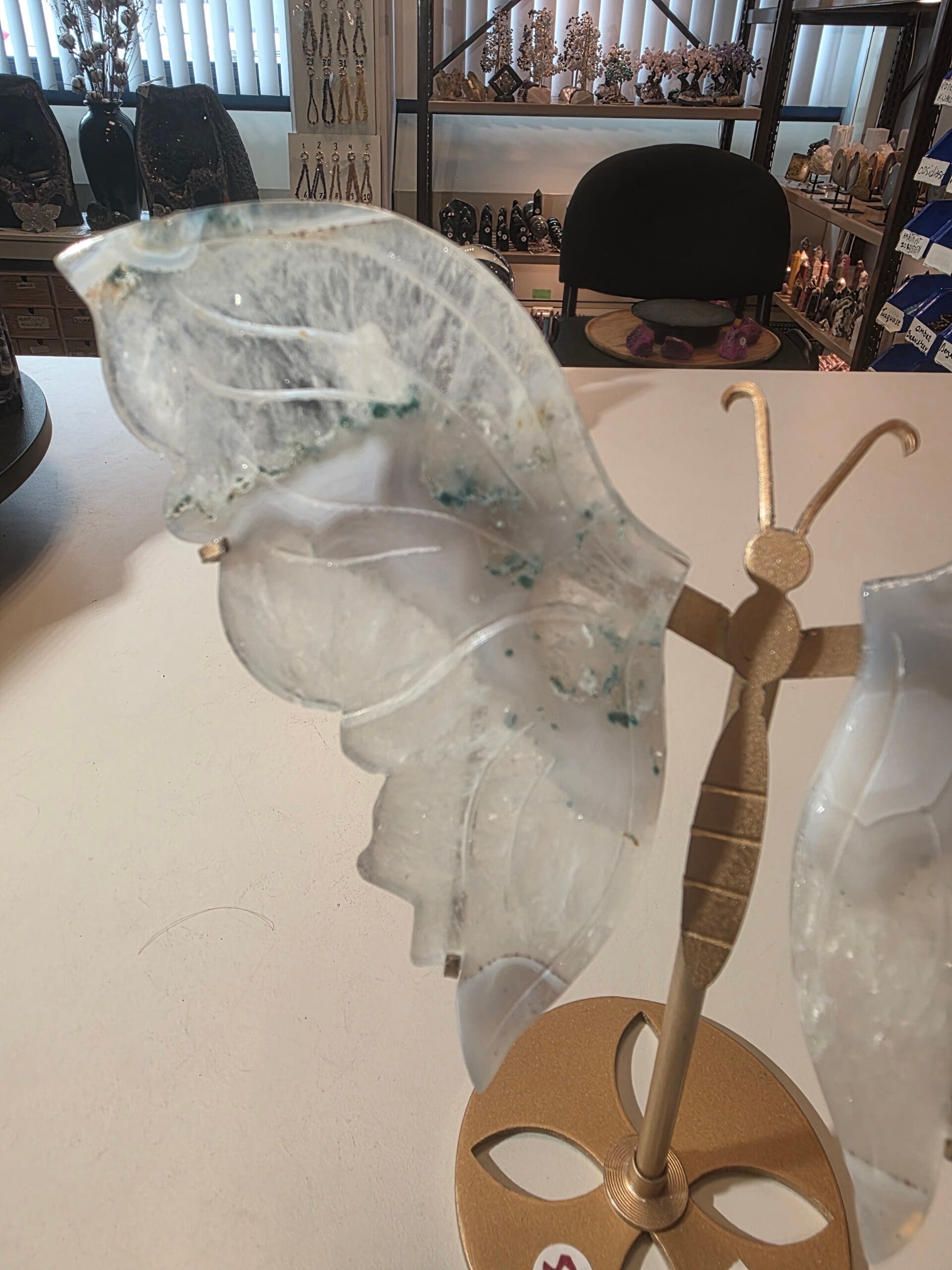 Prachtige grote heldere mosagaat vlinder 23.5cm hoog en 25.5 breed