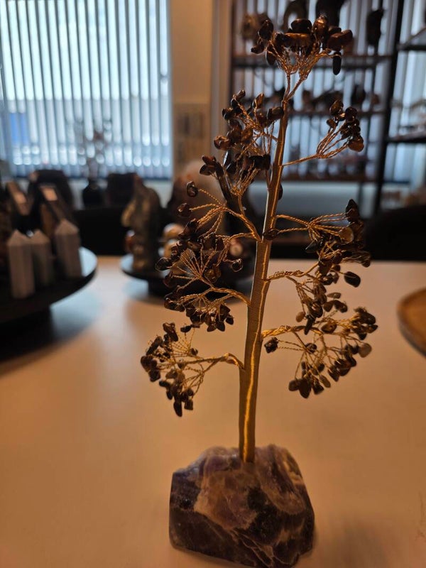 TIJGEROOG edelsteen Boom op AMETHIST 24 cm Hoog 12 CM Breed stam goud