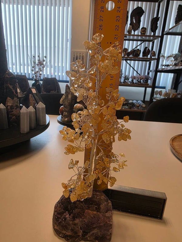 CITRIEN edelsteen Boom op AMETHIST 24.5 cm Hoog 10.5 CM Breed stam goud