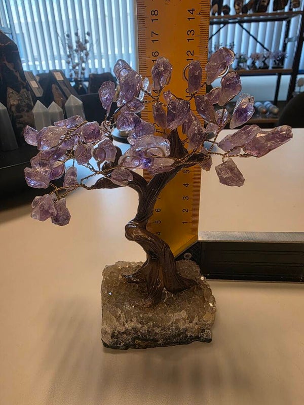 AMETHIST edelstenen Boom op lichte Amethist 16cm hoog 13 cm breed