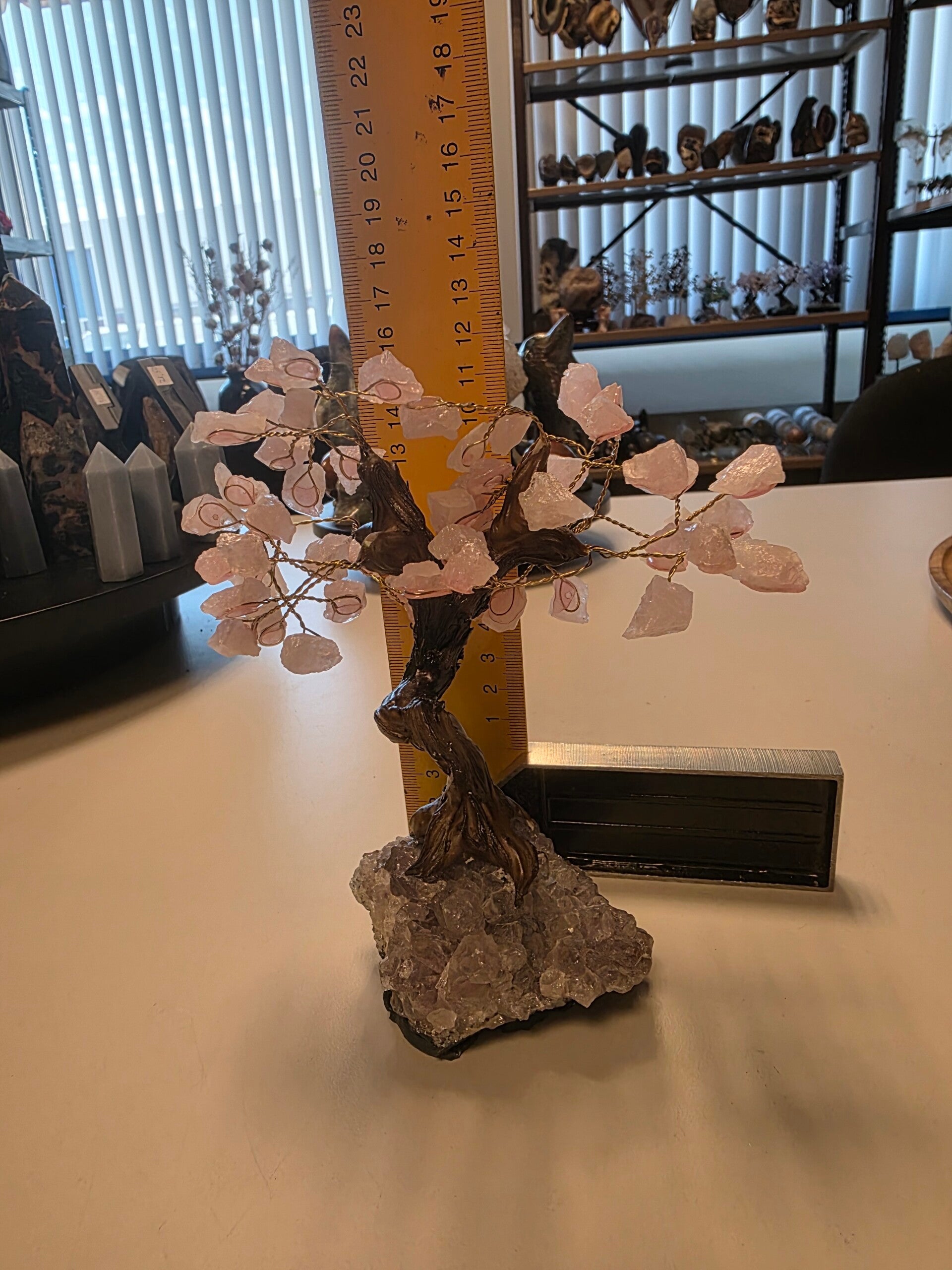 ROZENKWARTS edelstenen Boom op lichte Amethist 16cm hoog 13 cm breed
