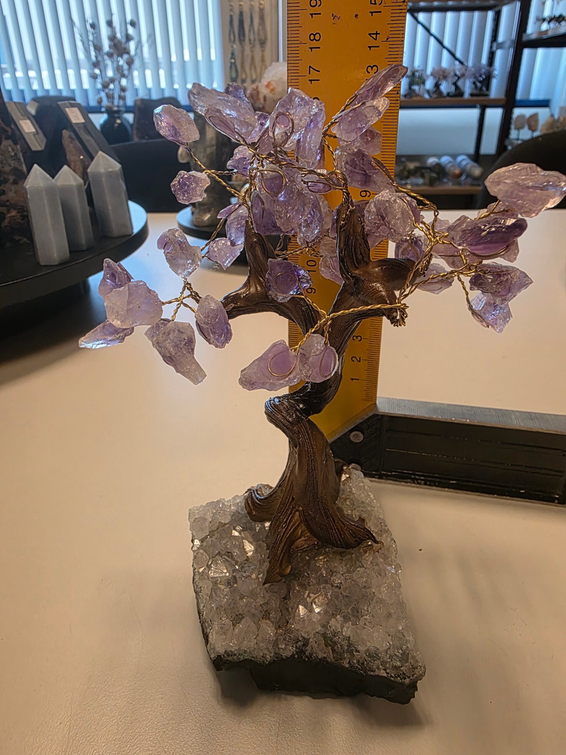 AMETHIST edelstenen Boom op lichte Amethist 16cm hoog 13 cm breed