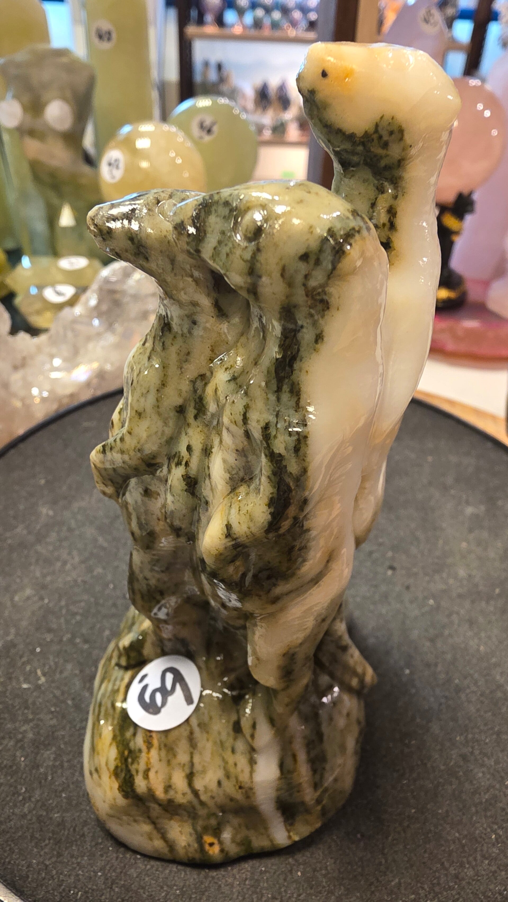 Prachtige Groep van Stokstaartjes van Serpetijn Jade ze wegen 450 gram en zijn 12.5 x 8 cm