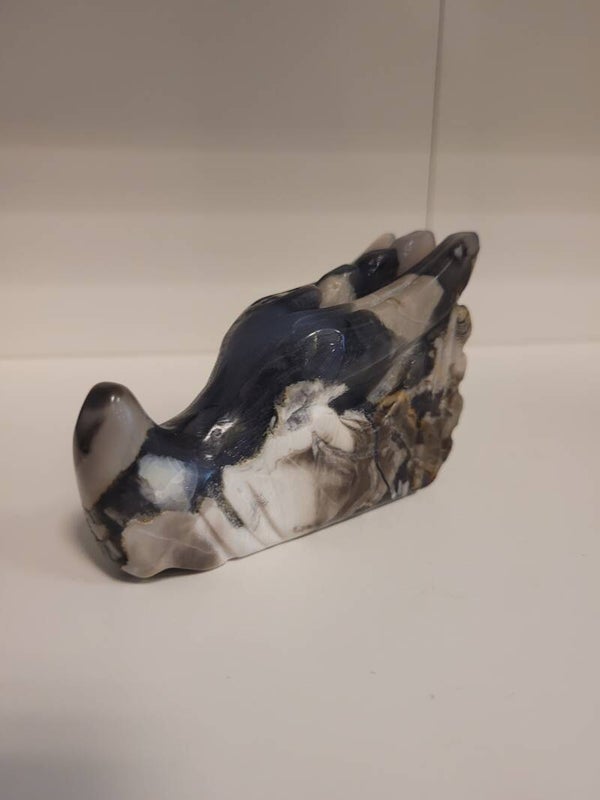 Prachtige vulcaan agaat Draak Vulkaan-agaat is een krachtig aardende en beschermende steen die helpt bij het afvoeren van negatieve energie, het bieden van emotionele stabiliteit en het stimuleren van persoonlijke groei en kracht